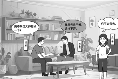 在与好友周某交流时,其建议李某找“大师”寻求指点,李某拒绝,但李某的妻子袁某却有些心动。