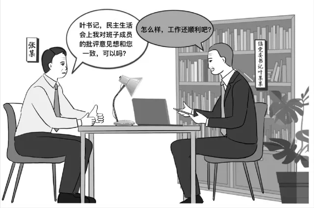 张某找到镇党委书记叶某某,提出自己对班子成员的批评意见想同书记保持一致。
