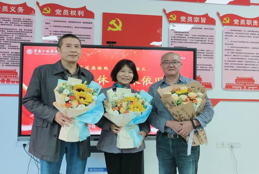 最后,学院为三位退休教师送上了鲜花和精心准备的纪念品。这些礼物不仅是对他们辛勤付出的肯定,更是对他们美好未来的祝福。