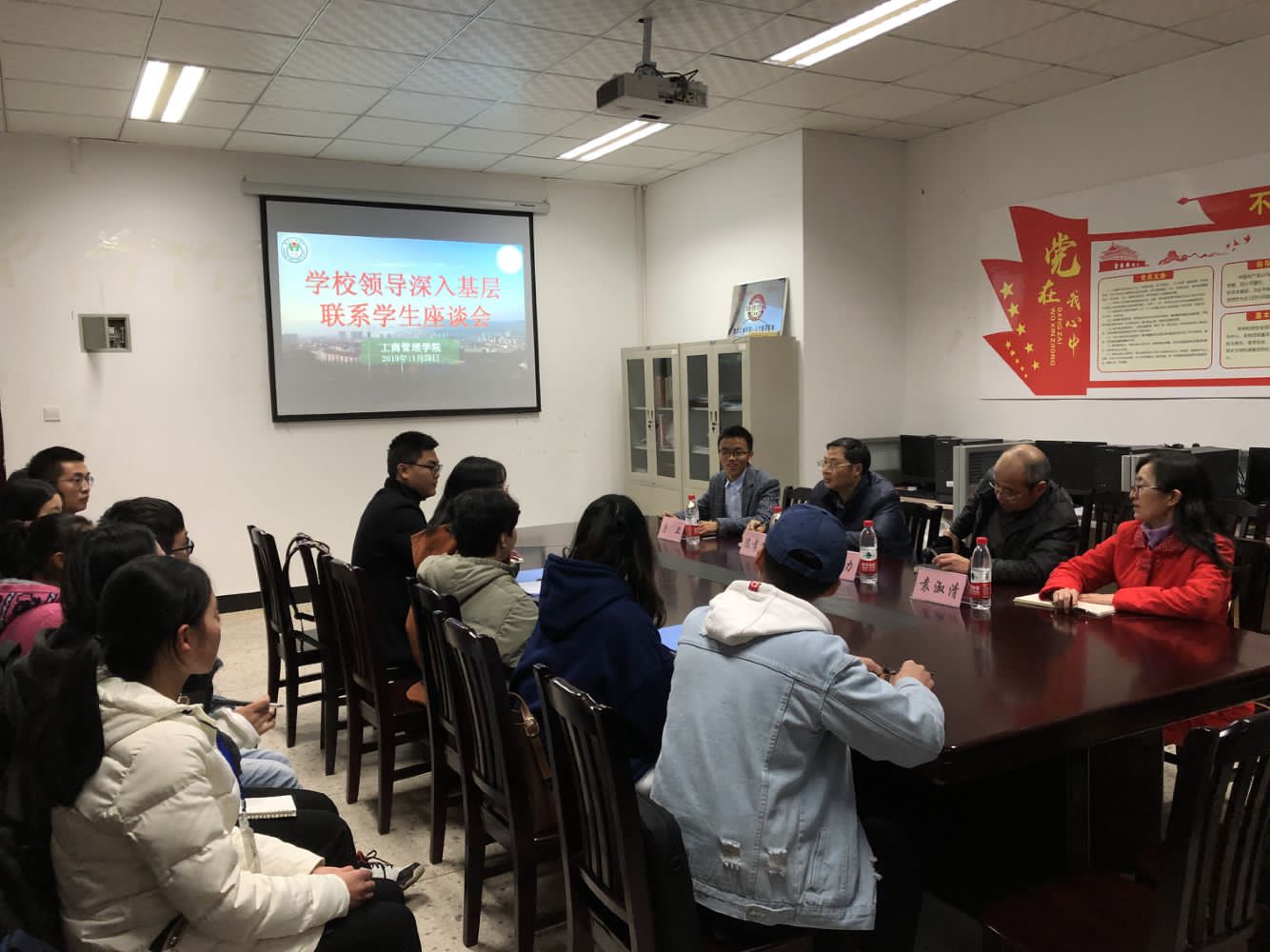 为充分了解学生在学习、生活以及协会活动等方面的需求,切实解决学生实际困难,2019年11月28日下午,学校党委委员陈孝胜深入44118太阳成tyc城集团在明辨楼一栋226室与2017级工商管理1班学生代表、市场营销协会学生代表以及桂花苑6舍404成员进行了座谈交流。44118太阳成tyc城集团党总支书记谭力等同志参加了此次座谈会。
