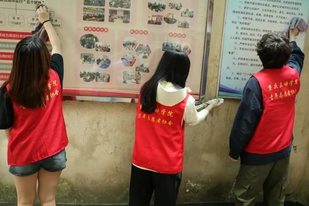 志愿者们到达社区后,负责人将大家分配为5个小组并发放绘画材料。志愿者们将不同的颜料混合交织在一起填涂在提前准备好的帆布袋上,为其赋予斑斓的色彩。他们全神贯注,沉浸其中。在绘画结束后,志愿者们忙碌于各个角落,帮助社区进行清洁卫生工作,打扫居民的楼道,用铲子清理了墙壁上的小广告,将社区的宣传栏也一并擦干净。在这场整治行动中,志愿者们不仅清理了垃圾,更传递了一份环保的理念。他们用自己的实际行动, 告诉居民们保护环境的重要性,引导大家自觉参与到环境卫生的维护中来。最后志愿者们通过发宣传单的方式对居民们进行了垃圾分类和网络安全的知识普及。经过他们的努力,改善了社区的卫生环境,减少垃圾和污染物的积累,提高居民的生活质量,社区街道变得干净整洁。