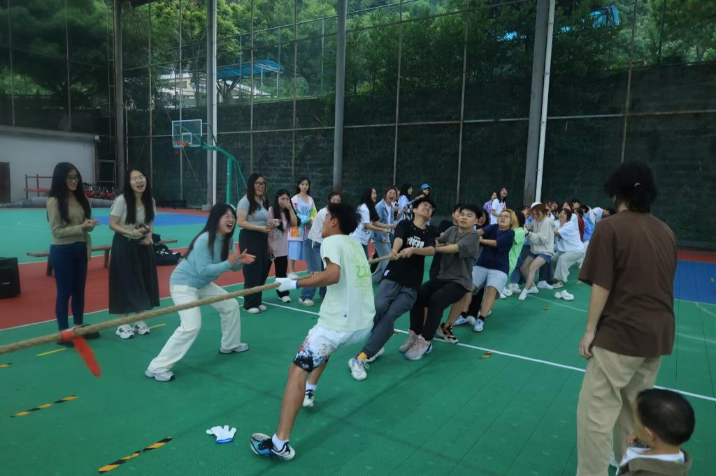 活动伊始,首先由我院辅导员唐卫老师宣讲比赛规则,并提醒我们友谊第一,比赛第二。而后,各班都做好了充足准备,斗志昂扬,精神饱满。每局交战的双方分列两侧严阵以待,起绳、绷紧、后仰预备。随着裁判哨声响起,双方队员齐心抗战、分毫必争,纷纷使出了“洪荒之力”。场外的拉拉队热情高涨,为各自班级加油助威。一声声呐喊也燃起了队员们的斗志,比赛紧张而激烈。赛场内来回摆动的绳索,牵动着大家悬着的心,大家共同为夺取胜利而拼尽力气。最后经过激烈的角逐,获得一等奖的是2023级市场营销1班,获得二等奖的是2023级工商管理2班,获得三等奖的是2023级酒店管理班。