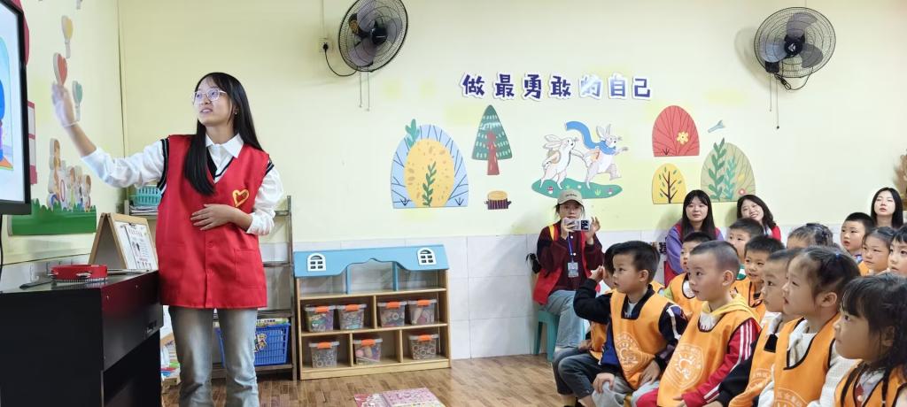 接着,志愿者李欣悦带领小朋友们做眼保健操,并呼吁他们要养成爱眼护眼的好习惯。最后,志愿者们与小朋友们共同参与“蒙眼喂食 ”、“‘瞎子’摸鱼”等小游戏,让小朋友们从中知道了眼睛的重要性,增强了他们保护眼睛的自我意识。