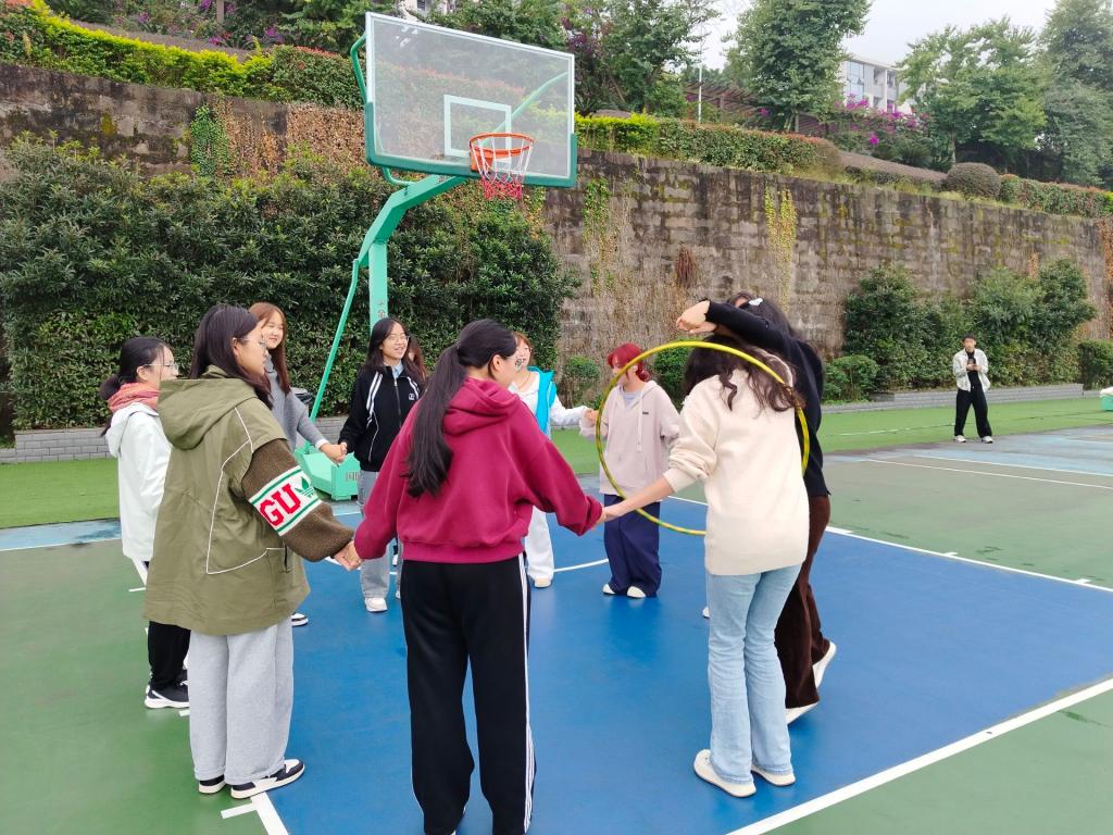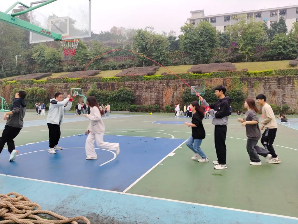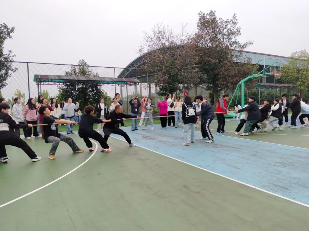 本次活动共设有“一圈到底”“背夹球”“跳长绳”“三人四足”“拔河”五个项目。参与者共组成八支不同队伍,其中A至F组是大一大二各一个班级通过抽签方式两两组合而成,G联队为研究生代表队伍,H联队为教师代表队伍。此次活动的项目既考验个人的体能和技巧,又强调团队协作的重要性。活动现场气氛热烈,欢声笑语不断,学生和教职工们在轻松愉快的氛围中尽享运动的乐趣。