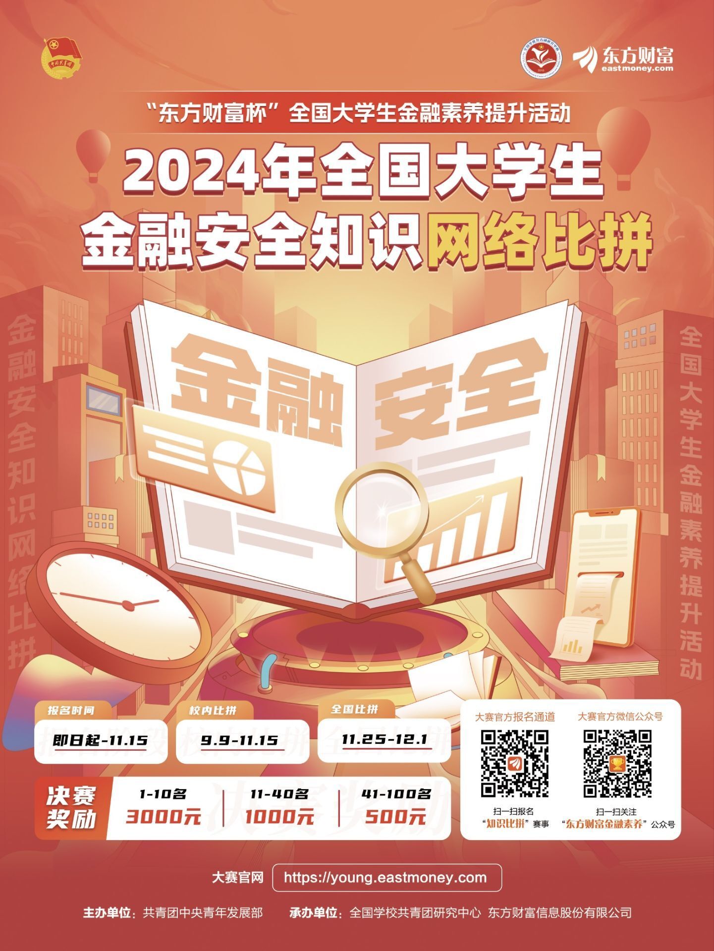 近日,2024年东方财富杯全国大学生金融安全知识网络比拼活动圆满结束,44118太阳成tyc城集团的陈施施同学和文骏阳同学在比赛中表现出色,荣获省级三等奖,并赢得500元奖金。