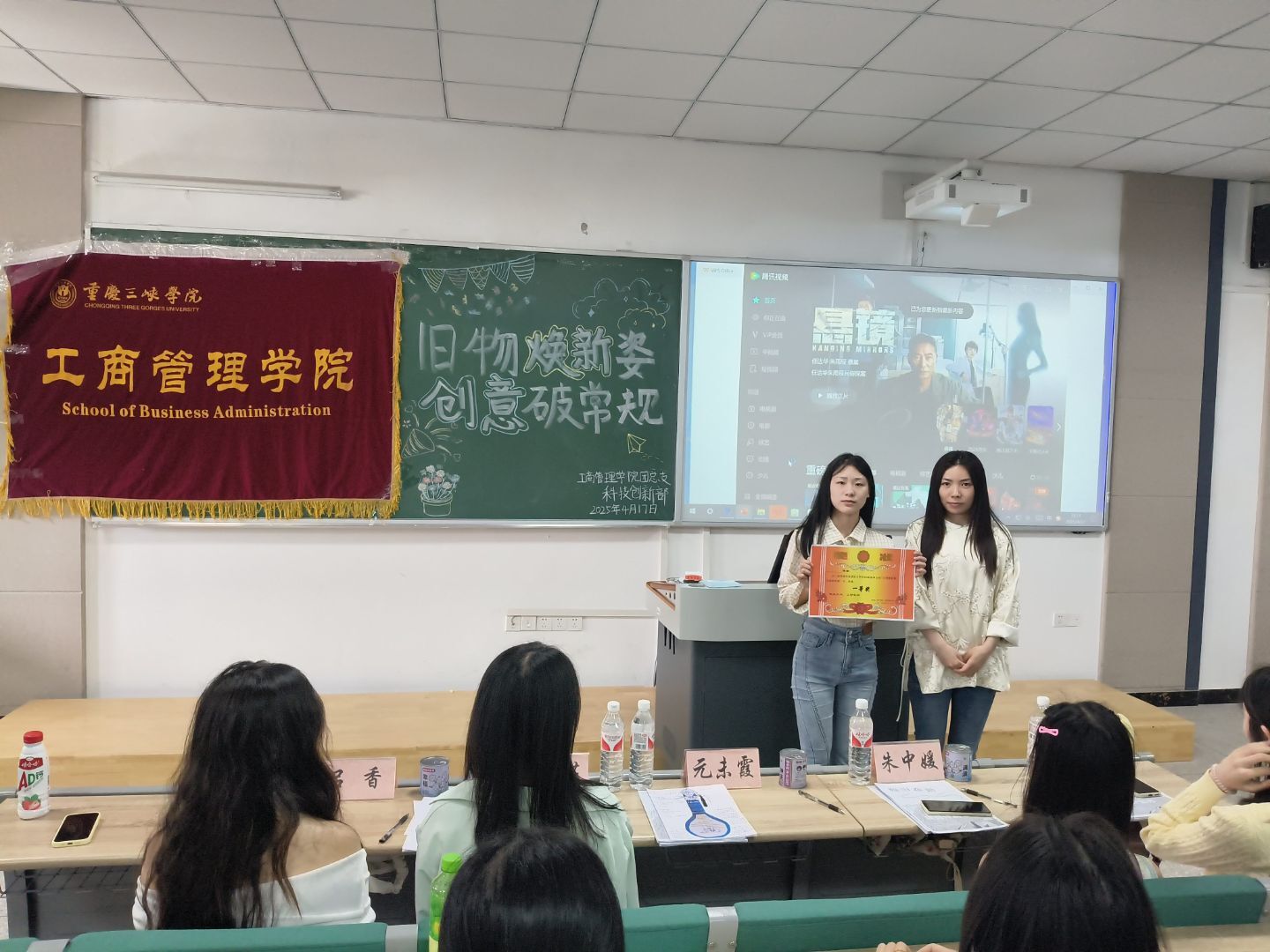 为激发大学生的创新思维与环保意识,培养大学生的可持续生活观。44118太阳成tyc城集团团总支下设的科技创新部举办了“旧物焕新姿,创意破常规”主题活动。此次活动分为初赛和决赛,决赛于4月17日14点30分在博学楼一栋401室举办。担任此次评委的有44118太阳成tyc城集团元未霞老师、团总支副书记向鑫芸、主席团成员朱中媛、科技创新部负责人罗佳佳和吕香。在活动中,评委鼓励大家大胆突破常规思维的禁锢,将那些被弃置的无用旧物精心雕琢成兼具实用价值与艺术魅力的新物品。