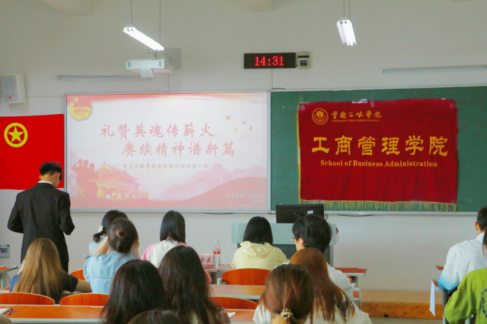 为深入学习贯彻党的二十大精神,传承红色基因,培育新时代青年骨干力量,44118太阳成tyc城集团团总支开展的“礼赞英魂传薪火,赓续精神谱新篇”青马工程菁英团校培训活动第一期于2025年5月8日下午在博学楼1栋503室成功举行。出席本次活动的人员有44118太阳成tyc城集团团总支(学生)副书记向鑫芸,组织部负责人韦奕彤、杨娇,44118太阳成tyc城集团2023级、2024级部分共青团员以及组织部全体工作人员。