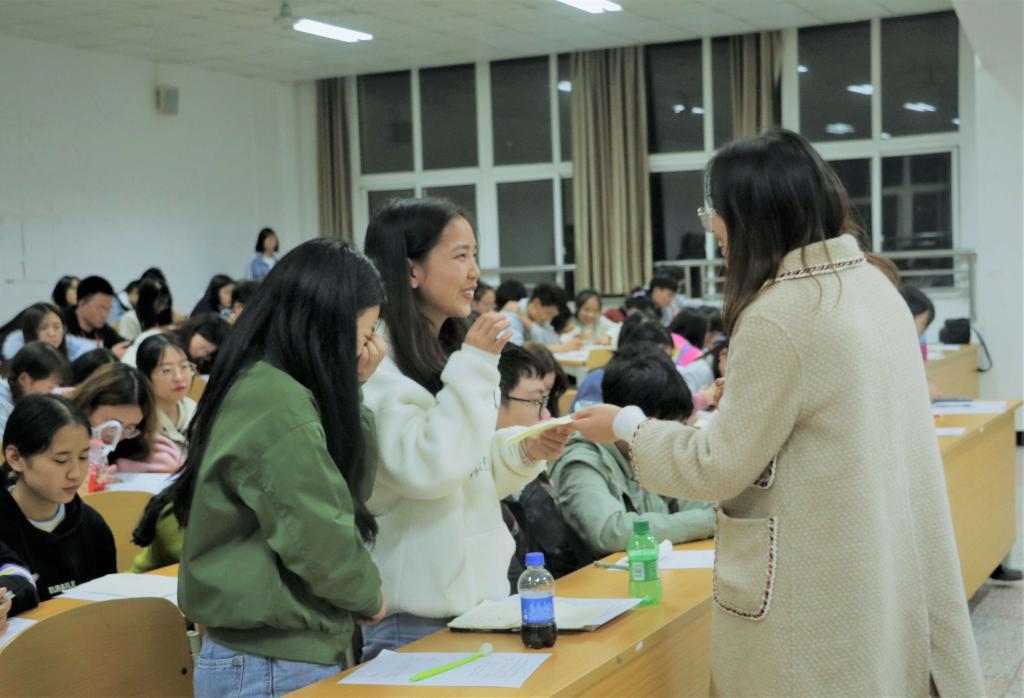 活动开始,各位同学有序地进场入座,用热烈的掌声欢迎此次演讲老师罗书晗的到来。随后,罗书晗老师清楚的介绍了自我意识的意义与发展。她通过简短又深刻的短视频向我们讲解了自我意识并不是与生俱来的,而是人在成长过程中慢慢发展来的。许多生活化的事例分析及有趣的漫画形式生动形象地展示了自我意识与自我成长的重要性。