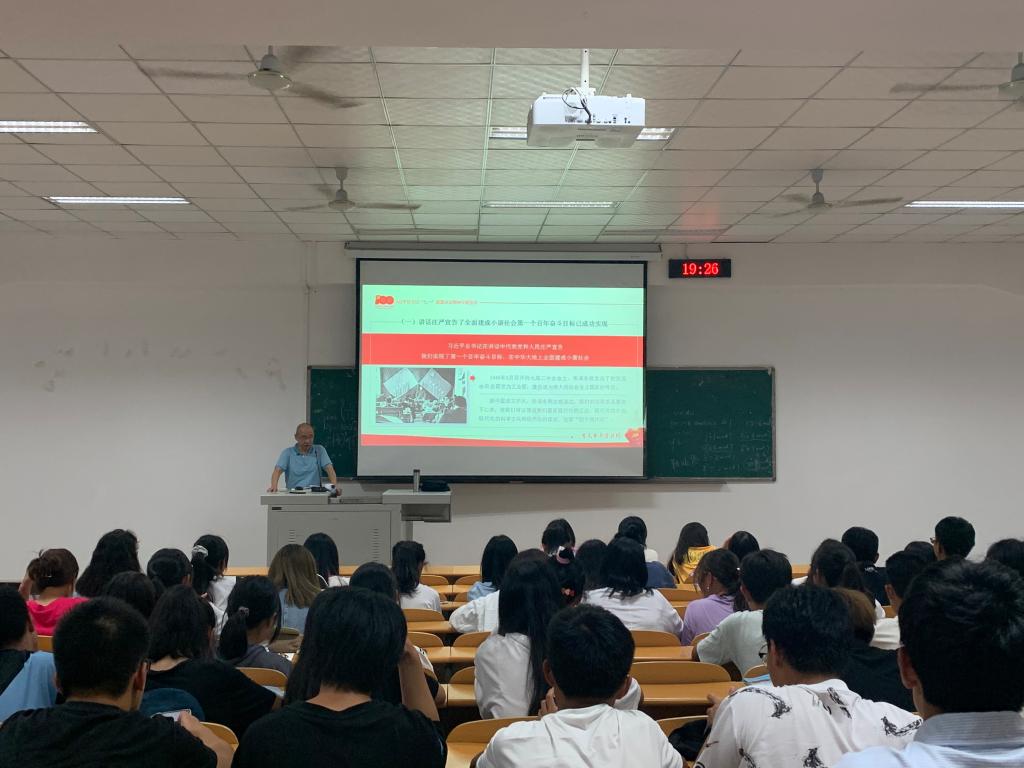 为学习贯彻习近平总书记“七一”重要讲话精神,2021年9月29日19时,谭力书记在明辨楼2栋102室为工商学子宣讲。