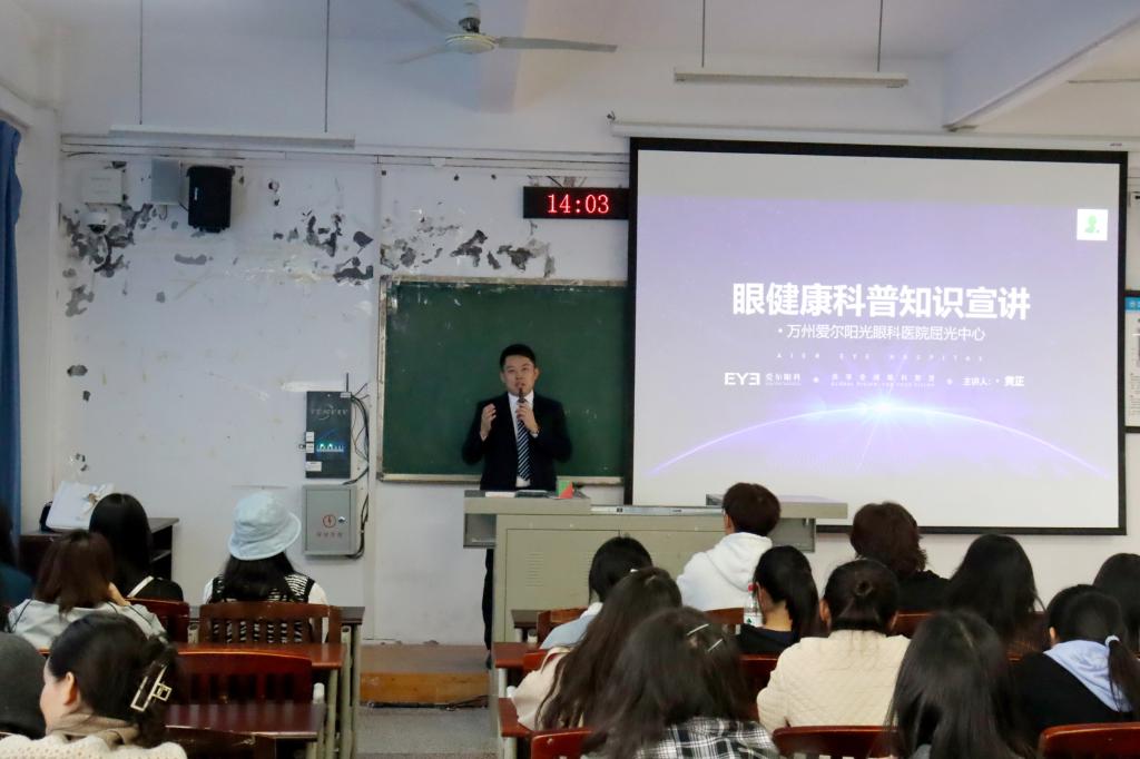 宣讲会正式开始,黄正医生首先为同学们讲解眼睛的结构特征和日常生活的使用。紧接着又给同学们科普一些常见的眼科疾病以及预防措施,告诫同学们养成良好习惯,合理用眼。黄医生幽默生动的语言和肢体动作让同学们记忆深刻。