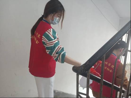 第一队志愿者在社区人员的带领下到达指定居民楼进行消毒,分发好相应的清洁工具,再对居民楼道进行清洁和消毒,来保障居民点的安全洁净,以降低疫情传播风险;另一队伍的志愿者们则在龙都广场附近活动,对居民进行疫情防控之下接种加强针的宣传,引导社区居民对疫情的高度关注与重视,加强疫苗对疫情防控的关键性保护作用。另外,部分志愿者参与文明督导,重视交通安全,为行人提供了良好的服务。
