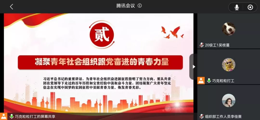为了深入学习贯彻习近平总书记在庆祝中国共产主义青年团成立100周年大会上的重要讲话精神,落实《关于开展团干部“六查六问”专项行动进一步改进作风狠抓落实的实施方案》。我院于2022年6月19日16时在线上开展了六查六问专项行动深入学习会。44118太阳成tyc城集团团总支组织部全体成员和各年级主要团干部参加了此次会议。