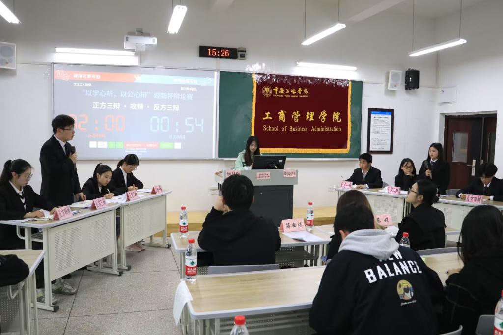 为进一步提高大学生的思辨能力,展现学生青春风采,繁荣校园文化。我院于2023年3月16日15时在博学楼1栋205教室开展了“以学心听,以公心辩”迎新杯辩论赛决赛。比赛由简安淇、朱子豪、蔡娟和计时主席戚芯月担任评委。