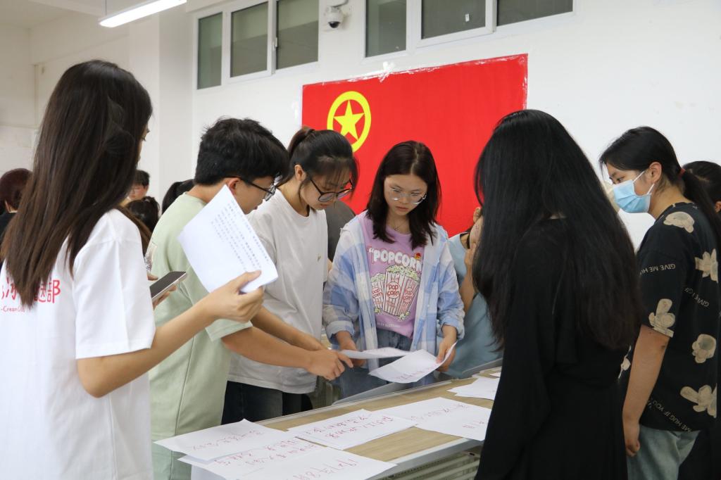紧接着,唐卫老师借本次活动深入开展党的二十大精神学习,他以二十大全称、召开地点、时间和中国重要的三个会议作为引入点,继而详细讲解了六个坚持和两步走战略等重要内容,并将其与我院专业特色联系,提出我院青年团员应坚定理想信念、奋发向上,争做新时代合格马克思主义者和优秀中国青年。参训人员在听讲过程中不仅认真记笔记,对所讲内容既深刻记在脑海又存于纸上。大家还从老师的讲话内容中有所感悟,现场三名同学积极发言,从讲座内容上进行了心得分享。最后,主持人公布游戏结果排名并告知同学们在活动结束后需写一篇活动感悟。本次活动在同学们热烈的掌声中落下帷幕。