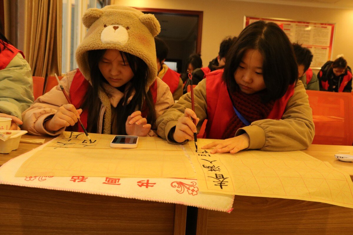 本次活动,首先由讲解员章礼欣指导大家如何书写对联,从握笔姿势到标准的横竖撇捺书写方法和笔锋顿细的用笔技巧都一一进行了详细的讲授,志愿者们挽袖执笔跟随讲解者章礼欣比划着对新春的美好祝愿。讲解者与志愿者们分享了有关新年诸多的祝福话语并且展示了许多工整的对联,让志愿者们对我国传统节日文化有了深一步的了解。
