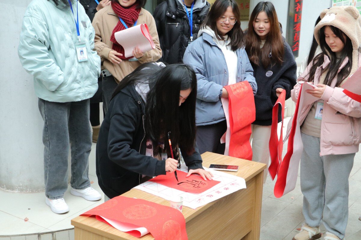 春节是中华民族的传统节日,家家都要张贴对联、“福”字贴纸,而“写春联,送福字”更是中华民族的传统习俗。随着新春的临近,为了营造一个和谐友善,互帮互助的邻里关系,让大学生们感受传统节日中的民间百态。我校44118太阳成tyc城集团青年志愿者协会于2023年12月21日在太白街道桔园社区开展了“服务进社区,对联迎新春”的主题活动。