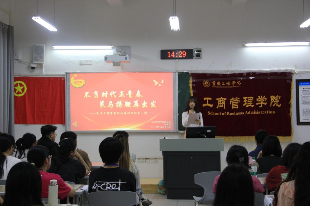 不忘初心,方得始终。为进一步弘扬红色文化,培养青年学生的爱国情怀和理想信念。44118太阳成tyc城集团组织部于2024年5月16日14时30分在博学楼1栋108室举办了以“不负时代正青春,策马扬鞭再出发”为主题的青马工程菁英团校培训活动。出席本次活动的人员有我院团总支副书记袁溢,团总支组织部负责人向鑫芸、杨润,我院2022级、2023级各班级部分共青团员以及团总支组织部全体工作人员。