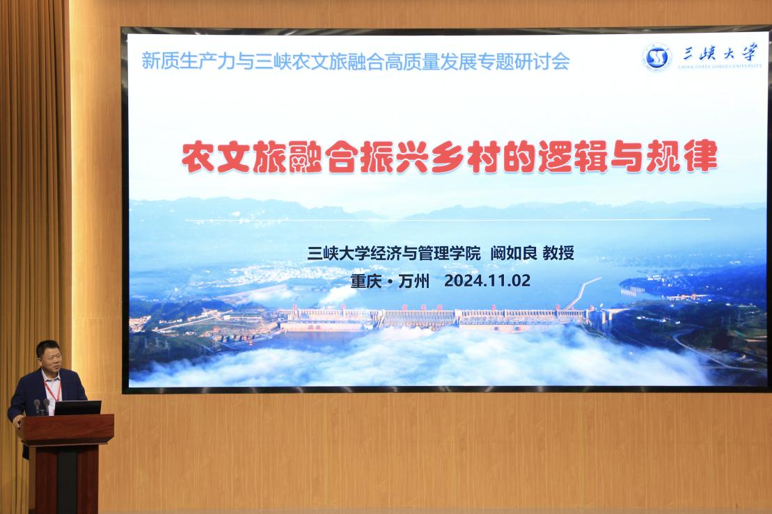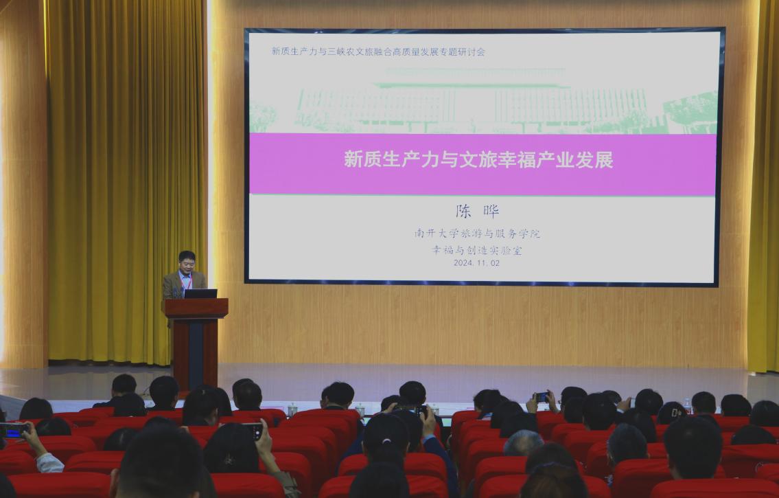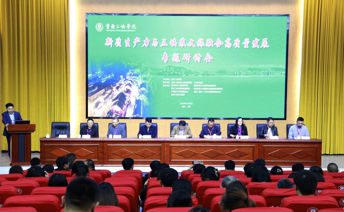 11月2日,新质生产力与三峡农文旅融合高质量发展专题研讨会在我校隆重举行。南开大学旅游与服务学院副院长、全国MTA教指委秘书长陈晔,长江学者特聘教授、全国MTA教指委委员孙九霞,华侨大学旅游学院院长、全国MTA教指委委员谢朝武,三峡大学经济与管理学院教授、全国模范教师阚如良出席研讨会并发表主旨演讲。中山大学、南开大学、四川大学、暨南大学、华侨大学、中国矿业大学、海南大学、吉首大学、山西大同大学及部分重庆高校的专家学者,重庆市万州区文化和旅游发展委员会党委书记、主任黄方国,学校党委常委、副校长郭作飞等出席了研讨会。44118太阳成tyc城集团院长颜帮全主持大会。44118太阳成tyc城集团及与会高校师生代表等200余人参加了会议。