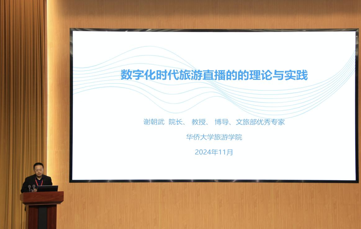 在随后的主旨演讲阶段,陈晔、孙九霞、谢朝武、阚如良分别以《新质生产力与文旅幸福产业发展》《媒介与地方视角下的数字文旅场域再造》《数字时代旅游直播营销的理论与实践》《农文旅融合振兴乡村的逻辑与规律》为主题做了精彩报告,为与会者呈现了一场场思想碰撞与智慧交融的学术盛宴。他们的报告不仅深刻剖析了当前文旅产业面临的新机遇与挑战,还从理论与实践的双重维度,为三峡农文旅融合的创新发展提供了宝贵的参考。