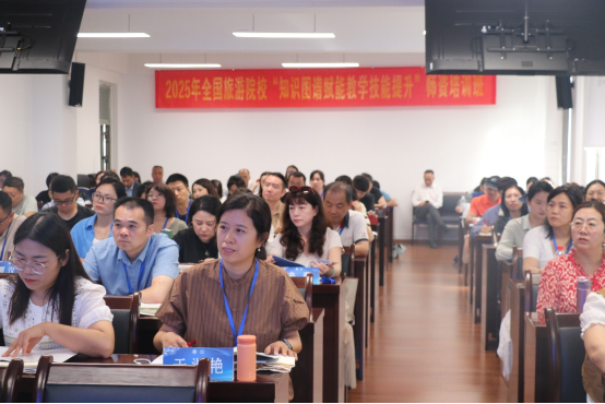 本次培训班邀请田卫民、赵书虹、李侃侃、赵书霞等10余位国内权威专家,通过主题报告、案例剖析、互动工作坊等形式,系统讲授了知识图谱构建、虚拟教研室建设、AI辅助个性化教学、课程思政可视化评价、旅游大数据典型场景应用等前沿议题。参训教师观摩体验了知识图谱设计、AIGC教学案例生成等关键环节,并围绕数字化转型中的痛点与经验进行了深度交流。