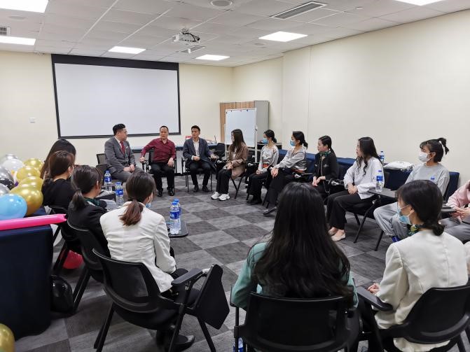 于开红副院长、唐卫老师在两家酒店都与我院酒店管理班的实习学生进行了座谈。座谈会上,于院长代表学院向所有实习生表示了亲切慰问。随后,实习生每人围绕工作内容、实习收获、实习感受等积极展开交流。张学豪、钟声等同学分享了个人实习前后心理变化,表示通过实习提升了自己的抗压能力以及环境适应能力。毛云莉、段岚等同学分享了对酒店工作以及酒店行业的深刻认识。同学们各抒己见,氛围活跃。