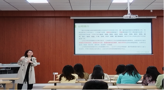 活动伊始,泰香米餐饮管理有限公司的代表以充满激情的开场白吸引了同学们的注意力。他首先介绍了泰香米作为一家的餐饮企业的公司简介,始终致力于为广大消费者提供健康、美味的餐饮体验。同时,他也强调了餐饮行业在当前社会的重要性,以及泰香米在行业内的领先地位和独特优势。接着,公司通过精心准备的PPT和视频资料,向同学们展示了泰香米的品牌故事、发展历程以及企业文化。此公司还向同学们介绍了他们的发展历程,作为一个新企业他们却已经在重庆四川站稳了脚跟,并且他们即将开向华南华北,攻坚华东,探索亚洲市场和让同学们了解了公司的顾客定位。此外,公司还重点介绍了泰香米在创新方面的努力和成果,如推出的新菜品、新服务模式等,充分展现了公司在行业内的创新力和领导力。