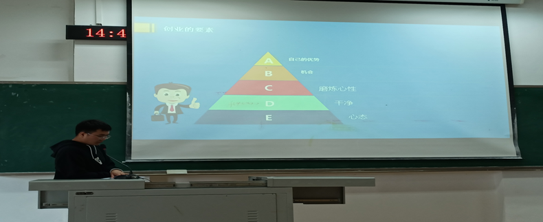 活动伊始,2018级电气傅聪同学作为主讲人将本次大会分为三个板块。板块一为学习方面,主要讲解如何拥有丰富的经历,学习经验,成就自己,傅聪同学用自己的亲身经历向同学们证明学习的重要性以及如何制定自己的目标;板块二为创新创业方面,主要讲解了创业的要素以及创业者的品质与素养,并结合自己开火锅店的经验详细叙述了创业所必需的精神能力要素;板块三为生活方面,主要讲解生活的意义以及面对生活的态度,傅聪同学阐述了自身的创业过程和如何面对创业之中的困难。最后还开展了问答活动,同学们积极提问,解决了许多对创业的疑惑,现场气氛活跃而有序。