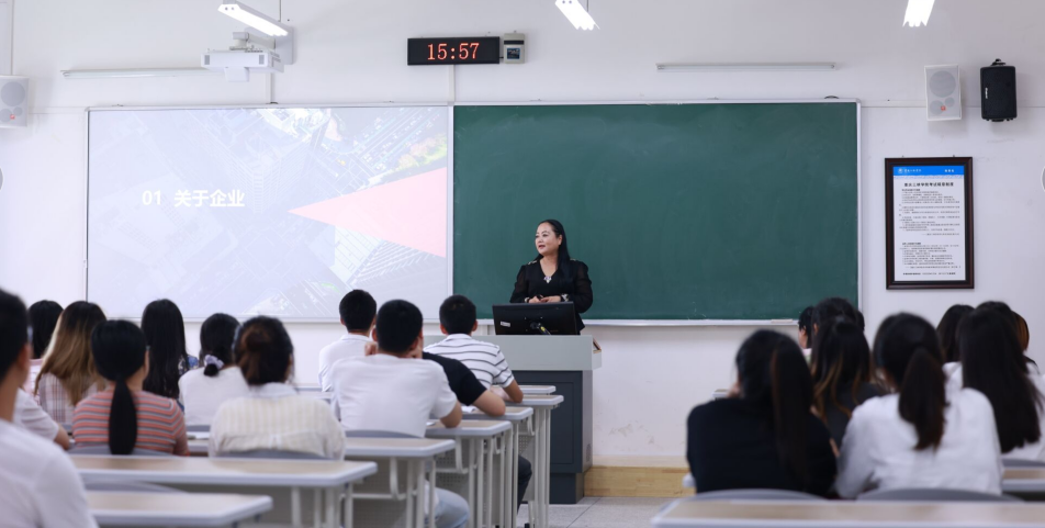 刘文菘处长就我校学生就业创业等情况作了简单介绍,严琦董事长就企业概况及人才需求情况作了介绍。随后,双方就人才培养、学生就业、创业孵化、学生实习、党建合作等具体事项进行了深入交流。座谈会后,严琦董事长在2022届未就业毕业生及2023届部分学生中开展了企业招聘宣讲。
