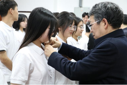 会议伊始,主持人向在场的51位英才班同学介绍了参与此次会议的各位嘉宾,正式开启了本次活动。随后,洲际酒店的王玫女士及集团代表席瑛女士通过连线分别对校企合作和英才培养研习中心项目进行了详细介绍。紧接着,祁俊生副校长和合作酒店总经理代表张鑫先生也进行了致辞,他们都表示此仪式标志着双方的合作迈出了实质性的一步,这必将成为双方发展史上的重要里程碑,也将有助于酒店管理专业的同学们学习更多关于酒店方面的实操知识。致辞结束后,合作酒店总经理代表张鑫先生授予颜帮全院长“洲际酒店集团人才培养战略合作伙伴”。在校企期待下,迎来了洲际英才项目的正式启动,并由在2022级洲际英才班学生代表陈圆圆发言,标志着酒店管理新学习平台的建立,校企合作迎来更多机会。最后,嘉宾们给英才班的每一位同学都授予了徽章与纪念品。