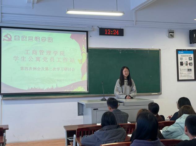 为使党员工作站的工作能够继续顺利开展,提高站内成员党建知识水平,44118太阳成tyc城集团学生公寓党员工作站于2020年11月13日12时20分在明辨楼一栋310开展第四次例会及第二次研讨会,唐卫老师及工作站内所有成员参加了此次例会。