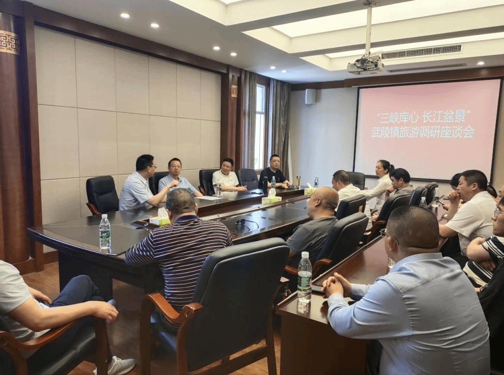 随后,一行人来到武陵镇镇政府展开旅游调研座谈会。会议指出武陵镇要立足其现有优势,深入挖掘、全面整合旅游资源,加快景区景点服务基础设施建设,补齐短板弱项,延伸旅游产业链条,在“吃、住、行、游、购、娱”上下工夫,注重发展研学产业,精心打造优质文旅产品,促进文旅融合发展。万州区文化和旅游协会会长、我院校外合作导师许鹏表示,万州区政府对武陵镇旅游业的大力支持有效拉动了周边区域餐饮、住宿、交通等产业发展,达到了经济效益与社会效益双丰收。