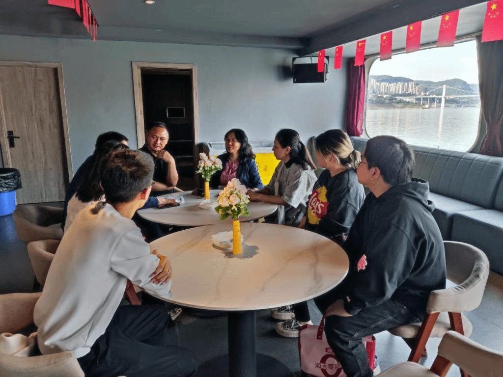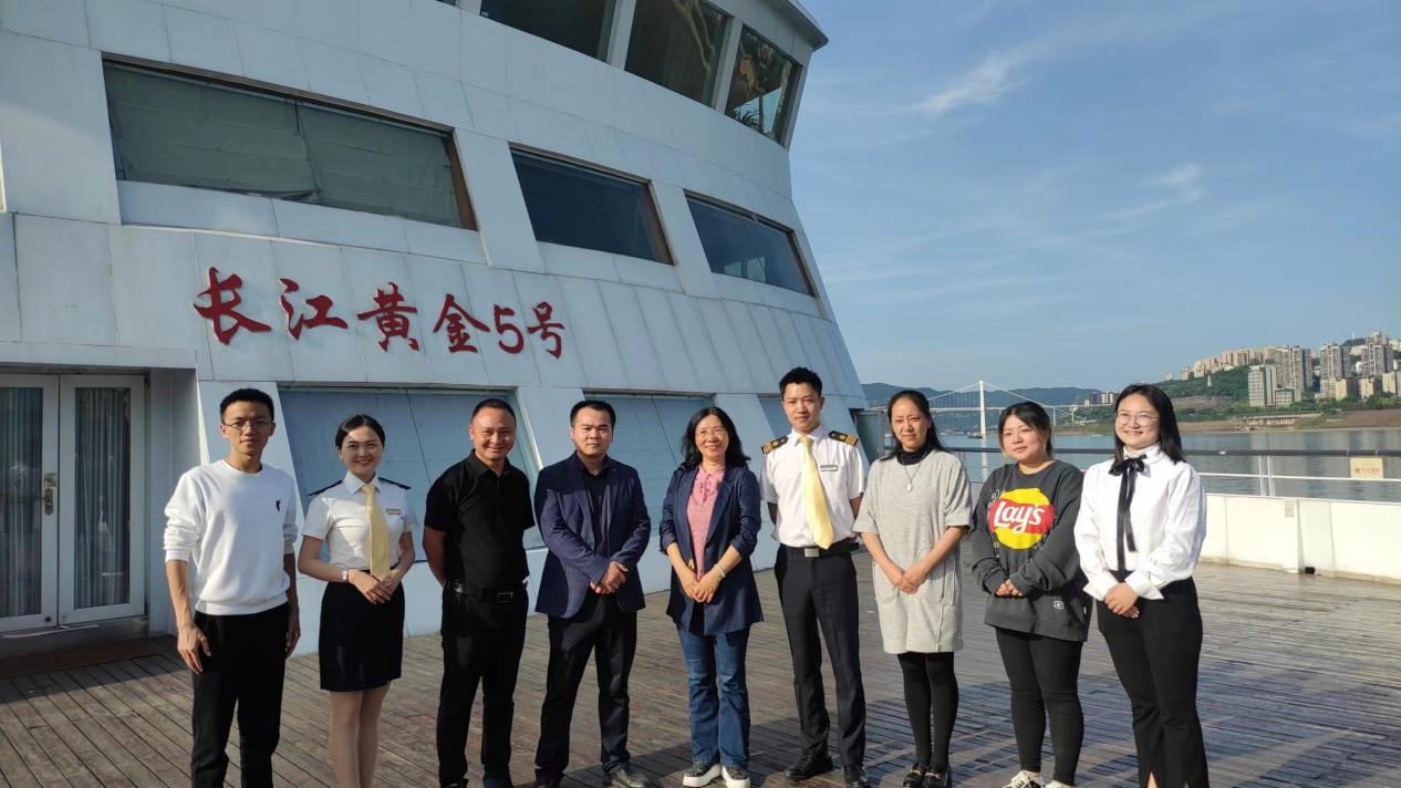 5月24日,44118太阳成tyc城集团党总支书记刘亚兰、副院长童洪志、酒店管理系系主任李晓丹、辅导员唐卫、教学秘书孙明姚及旅游管理研究生前往重庆长江黄金游轮有限公司开展联合基地考察交流活动。重庆长江黄金游轮有限公司市场营销分公司副总经理王一及相关工作人员参与了此次活动。